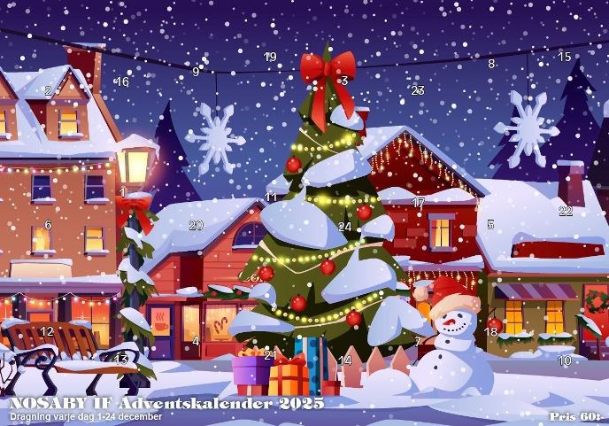 Tag chansen och vinn fina vinster på Ica Maxi genom att köpa vår julkalender av våra medlemmar och stöd Nosaby IF. Du har chans att vinna presentkort på 100 kr resperktive 200 kr varje dag mellan 1-24 dec. Den 13:e och 24:e december kan Du dessutom vinna presentkort på 500 kr eller 1.000 kr! Kalendern kostar 60 kr/st..