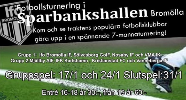 Ikväll avgjordes Grupp 1 i Bromöllas inneturnering Nosaby inledde stabilt med en 3-0-seger mot VMA. I andra matchen väntade Sölvesborg och den blev jämnare men Nosaby avgick med segern 3-2. I och med att även Bromölla vann sina matcher blev det en ren gruppfinal mot hemmalaget efter en kort vila. Bromölla tog tidigt ledningen och kunde öka på till 2-0 som också blev slutresultatet. Nosaby slutade därmed 2:a och nästa fredag avgörs grupp 2. Nosaby möter 3:an i Grupp 2 i sin kvartsfinal som avgörs 31 jan. A-Lag 17 jan 2020